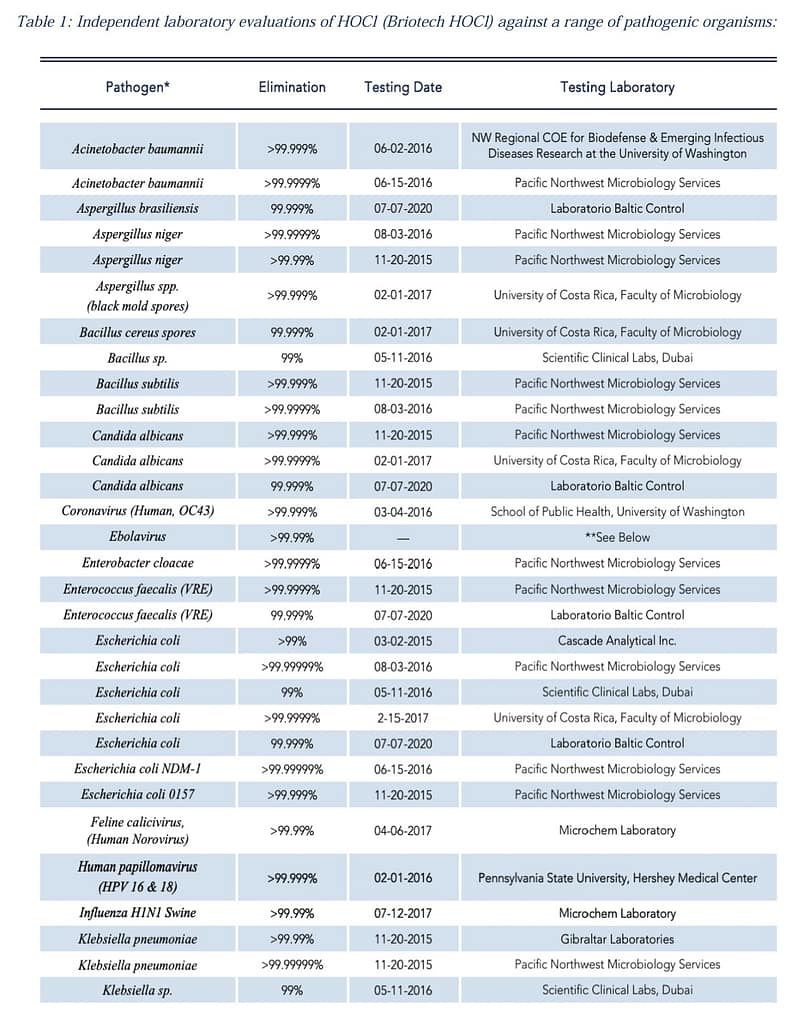 Impressed? We certainly are! For more links and information about the pathogen killing power of HOCl, we’ll provide those for you below.